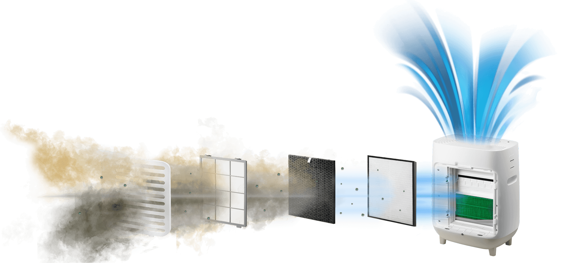 Kahekordne süsinikfilter, mis eemaldab halvad lõhnad, tubakalõhnad, lemmikloomalõhnad, kahjulikud gaasid, formaldehüüdi ja lenduvad orgaanilised ühendid.